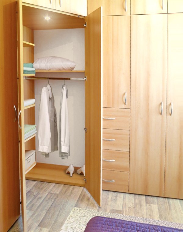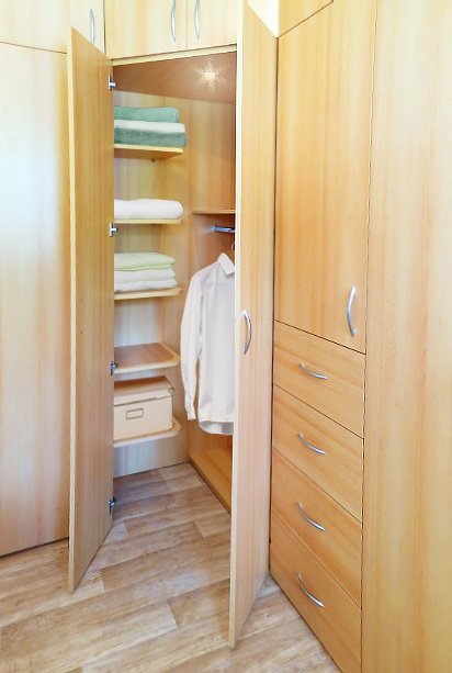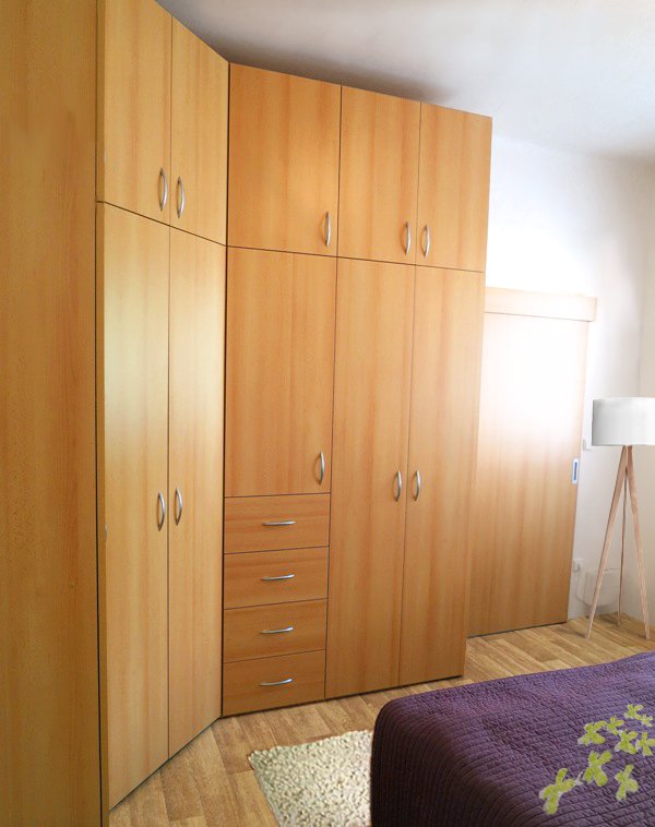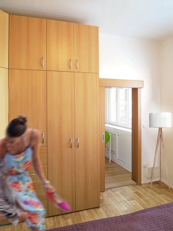 Dodávka nábytku: skříňová rohová sestava, obložka zárubní, posuvné dveře